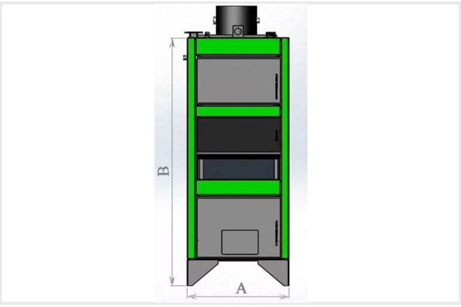 - Оснащен водонаполненными колосниками, встроенными в водяной контур котла.
