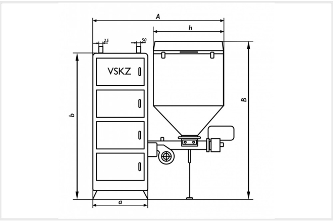 - Бункер с газлифтом — объём до 450 л, возможна установка слева или справа от котла для удобства монтажа.